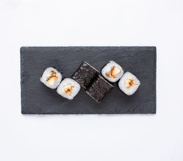 Водоросли нори, рис, угорь копченый, соус унаги, кунжут 6 штук